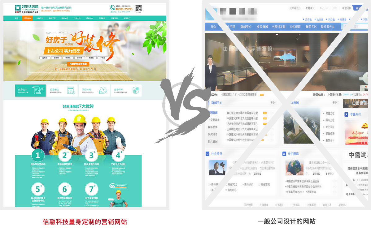 這兩個網(wǎng)站您更愿意在哪個網(wǎng)站多停留?傳統(tǒng)模式的網(wǎng)站已經(jīng)落伍了!信融科技為您私人訂制網(wǎng)站助你成功!